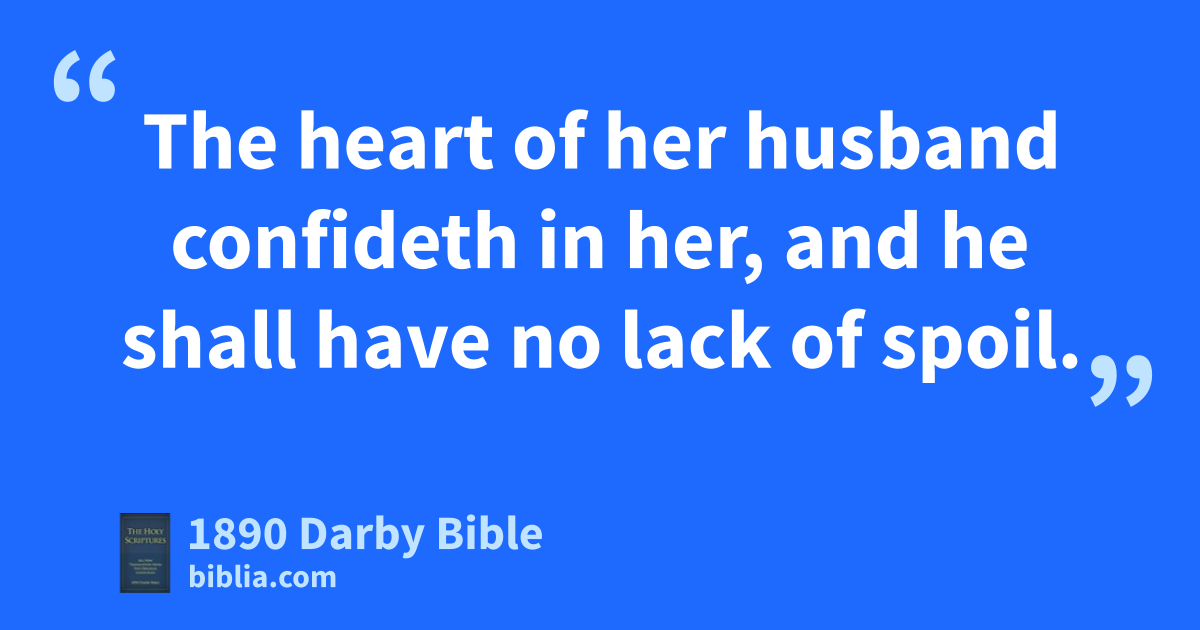 10 Who can find a woman of worth? for her price is far above rubies. 11 The heart of her husband confideth in her, and he shall have no lack of spoil. 12 She doeth him good, and not evil, all the days of her life. 13 She seeketh wool and flax, and worketh willingly with her hands. 14 She is like the merchants’ ships: she bringeth her food from afar; 15 And she riseth while it is yet night, and giveth meat to her household, and the day’s work to her maidens. 16 She considereth a field, and acquireth it; of the fruit of her hands she planteth a vineyard. 17 She girdeth her loins with strength, and maketh strong her arms. 18 She perceiveth that her earning is good; her lamp goeth not out by night. 19 She putteth her hands to the distaff, and her hands hold the spindle. 20 She stretcheth out her hand to the afflicted, and she reacheth forth her hands to the needy. 21 She is not afraid of the snow for her household; for all her household are clothed with scarlet. 22 She maketh herself coverlets; her clothing is byssus and purple. 23 Her husband is known in the gates, when he sitteth among the elders of the land. 24 She maketh body linen and selleth it, and delivereth girdles unto the merchant. 25 Strength and dignity are her clothing, and she laugheth at the coming day. 26 She openeth her mouth with wisdom; and upon her tongue is the law of kindness. 27 She surveyeth the ways of her household, and eateth not the bread of idleness. 28 Her children rise up and call her blessed; her husband also, and he praiseth her: 29 Many daughters have done worthily, but thou excellest them all. 30 Gracefulness is deceitful and beauty is vain; a woman that feareth Jehovah, she shall be praised. 31 Give her of the fruit of her hands, and let her own works praise her in the gates.