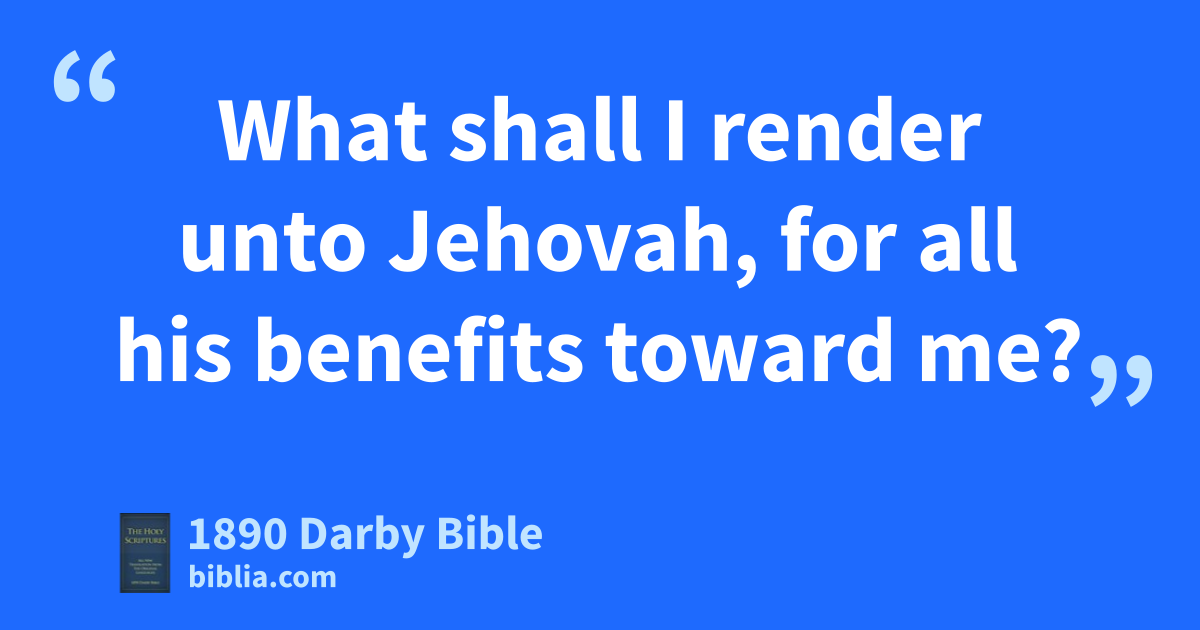 10 I believed, therefore have I spoken. As for me, I was greatly afflicted. 11 I said in my haste, All men are liars. 12 What shall I render unto Jehovah, for all his benefits toward me? 13 I will take the cup of salvation, and call upon the name of Jehovah. 14 I will perform my vows unto Jehovah, yea, before all his people. 15 Precious in the sight of Jehovah is the death of his saints. 16 Yea, Jehovah! for I am thy servant; I am thy servant, the son of thy handmaid: thou hast loosed my bonds. 17 I will offer to thee the sacrifice of thanksgiving, and will call upon the name of Jehovah. 18 I will perform my vows unto Jehovah, yea, before all his people, 19 In the courts of Jehovah’s house, in the midst of thee, O Jerusalem. Hallelujah!