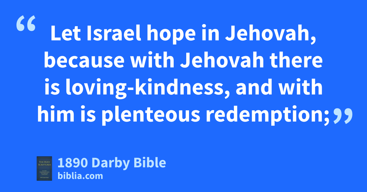 5 I wait for Jehovah; my soul doth wait, and in his word do I hope. 6 My soul waiteth for the Lord more than the watchers wait for the morning, more than the watchers for the morning. 7 Let Israel hope in Jehovah, because with Jehovah there is loving-kindness, and with him is plenteous redemption; 8 And he will redeem Israel from all his iniquities.