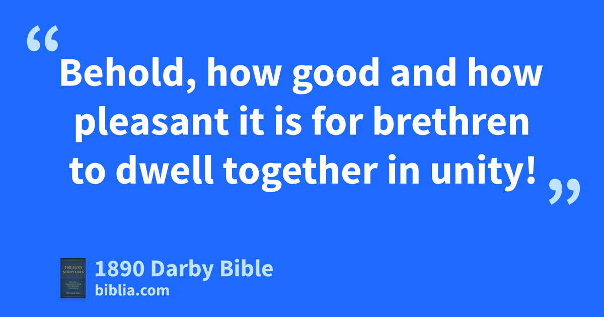 1 Behold, how good and how pleasant it is for brethren to dwell together in unity! 2 Like the precious oil upon the head, that ran down upon the beard, upon Aaron’s beard, that ran down to the hem of his garments; 3 As the dew of Hermon that descendeth on the mountains of Zion; for there hath Jehovah commanded the blessing, life for evermore.