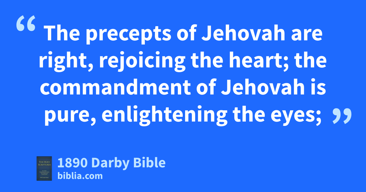 7 The law of Jehovah is perfect, restoring the soul; the testimony of Jehovah is sure, making wise the simple; 8 The precepts of Jehovah are right, rejoicing the heart; the commandment of Jehovah is pure, enlightening the eyes; 9 The fear of Jehovah is clean, enduring for ever; the judgments of Jehovah are truth, they are righteous altogether: 10 They are more precious than gold, yea, than much fine gold; and sweeter than honey and the dropping of the honeycomb. 11 Moreover, by them is thy servant enlightened; in keeping them there is great reward. 12 Who understandeth his errors? Purify me from secret faults. 13 Keep back thy servant also from presumptuous sins; let them not have dominion over me: then shall I be perfect, and I shall be innocent from great transgression. 14 Let the words of my mouth and the meditation of my heart be acceptable in thy sight, O Jehovah, my rock, and my redeemer.