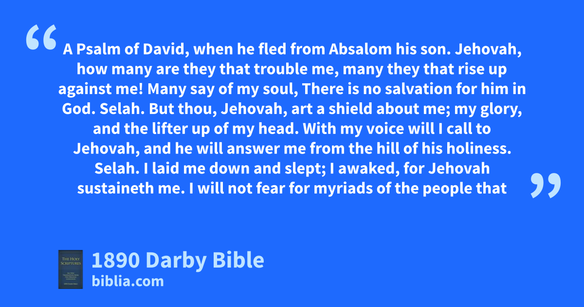 1 Jehovah, how many are they that trouble me, many they that rise up against me! 2 Many say of my soul, There is no salvation for him in God. Selah. 3 But thou, Jehovah, art a shield about me; my glory, and the lifter up of my head.