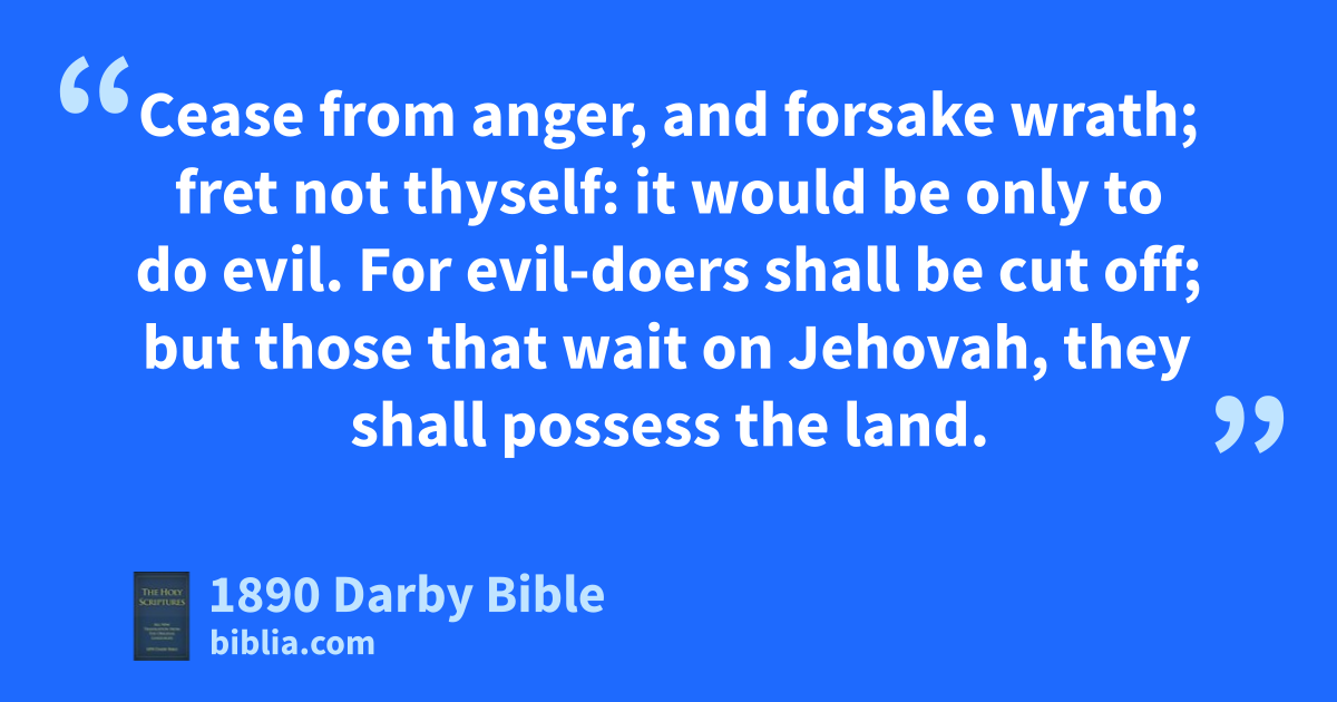 7 Rest in Jehovah, and wait patiently for him: fret not thyself because of him that prospereth in his way, because of the man that bringeth mischievous devices to pass. 8 Cease from anger, and forsake wrath; fret not thyself: it would be only to do evil. 9 For evil-doers shall be cut off; but those that wait on Jehovah, they shall possess the land. 10 For yet a little while, and the wicked is not; and thou considerest his place, but he is not. 11 But the meek shall possess the land, and shall delight themselves in the abundance of prosperity. 12 The wicked plotteth against the righteous, and gnasheth his teeth against him. 13 The Lord laugheth at him; for he seeth that his day is coming. 14 The wicked have drawn out the sword, and have bent their bow, to cast down the afflicted and needy, to slay those that are upright in the way: 15 their sword shall enter into their own heart, and their bows shall be broken. 16 The little that the righteous hath is better than the abundance of many wicked; 17 for the arms of the wicked shall be broken, but Jehovah upholdeth the righteous. 18 Jehovah knoweth the days of the perfect; and their inheritance shall be for ever: 19 they shall not be ashamed in the time of evil, and in the days of famine they shall be satisfied. 20 For the wicked shall perish, and the enemies of Jehovah shall be as the fat of lambs: they shall consume, like smoke shall they consume away.