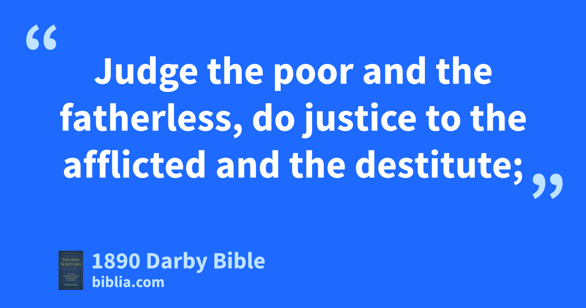 1 God standeth in the assembly of •God, he judgeth among the gods. 2 How long will ye judge unrighteously, and accept the person of the wicked? Selah. 3 Judge the poor and the fatherless, do justice to the afflicted and the destitute; 4 Rescue the poor and needy, deliver them out of the hand of the wicked. 5 They know not, neither do they understand; they walk on in darkness: all the foundations of the earth are moved.