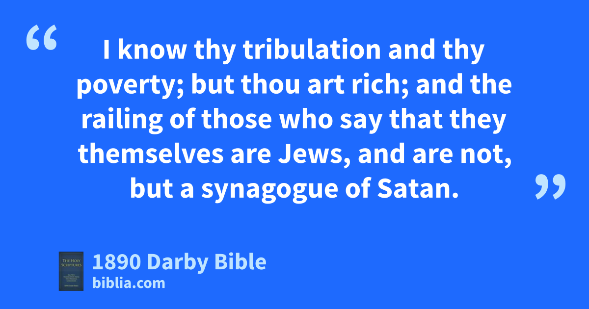 8 And to the angel of the assembly in Smyrna write: These things says the first and the last, who became dead, and lived: 9 I know thy tribulation and thy poverty; but thou art rich; and the railing of those who say that they themselves are Jews, and are not, but a synagogue of Satan. 10 Fear nothing of what thou art about to suffer. Behold, the devil is about to cast of you into prison, that ye may be tried; and ye shall have tribulation ten days. Be thou faithful unto death, and I will give to thee the crown of life. 11 He that has an ear, let him hear what the Spirit says to the assemblies. He that overcomes shall in no wise be injured of the second death.