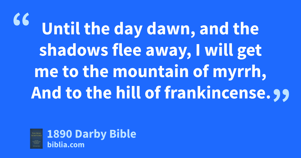 1 Behold, thou art fair, my love; behold, thou art fair; Thine eyes are doves behind thy veil; Thy hair is as a flock of goats, On the slopes of mount Gilead. 2 Thy teeth are like a flock of shorn sheep, Which go up from the washing; Which have all borne twins, And none is barren among them. 3 Thy lips are like a thread of scarlet, And thy speech is comely; As a piece of a pomegranate are thy temples Behind thy veil. 4 Thy neck is like the tower of David, Built for an armoury: A thousand bucklers hang thereon, All shields of mighty men. 5 Thy two breasts are like two fawns, twins of a gazelle, Which feed among the lilies. 6 Until the day dawn, and the shadows flee away, I will get me to the mountain of myrrh, And to the hill of frankincense. 7 Thou art all fair, my love; And there is no spot in thee.
