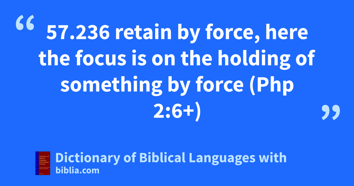 57.236 retain by force, here the focus is on the holding of something by force (Php 2:6+)