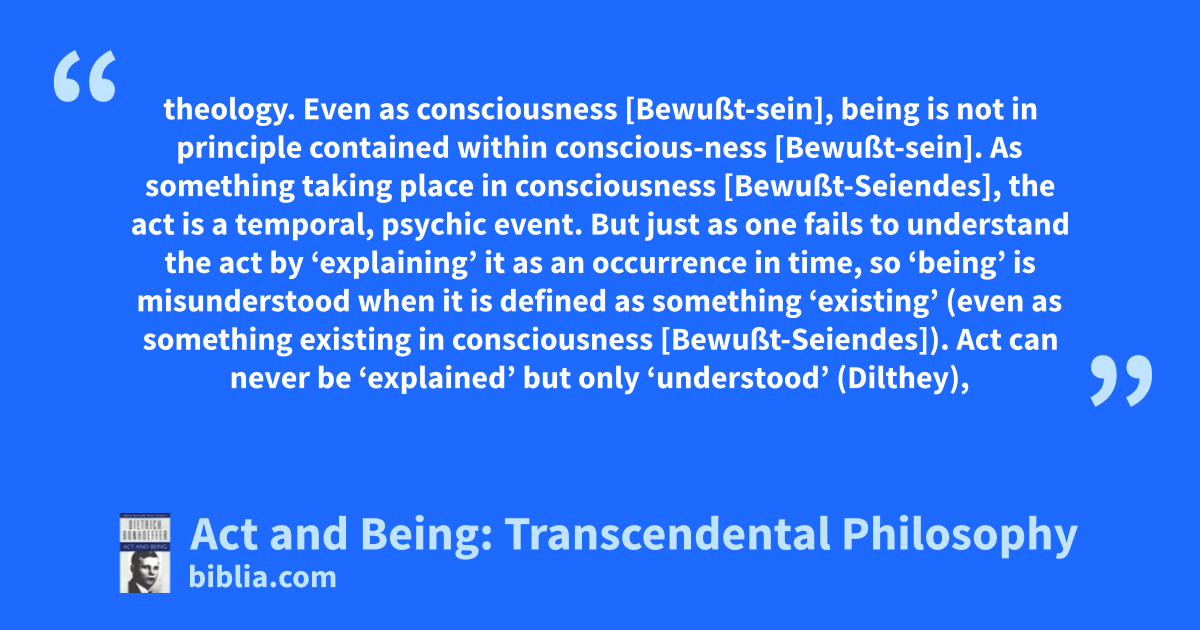 Act and Being, written in 1929–1930 as Bonhoeffer’s second dissertation, deals with the questions of consciousness and conscience in theology from the perspective of the Reformation insight about the origin of human sinfulness in the “heart turned in upon itself and thus open neither to the revelation of God nor to the encounter with the neighbor.” Here, therefore, we find Bonhoeffer’s thoughts...