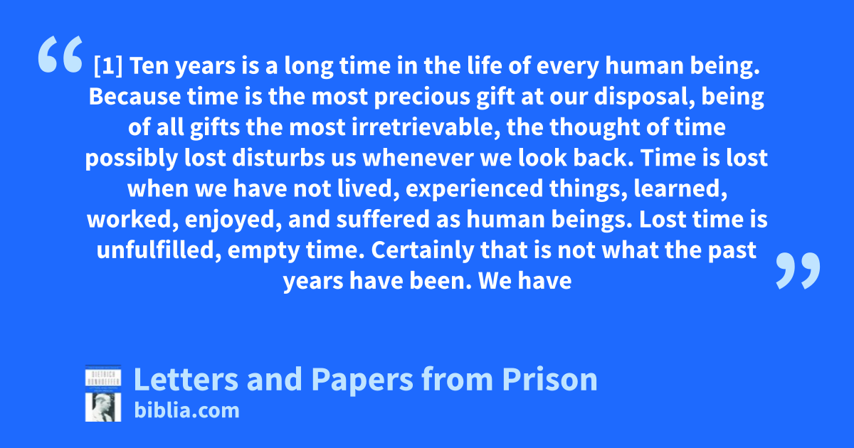 [1] Ten years is a long time in the life of every human being. Because time is the most precious gift at our disposal, being of all gifts the most irretrievable, the thought of time possibly lost disturbs us whenever we look back. Time is lost when we have not lived, experienced things, learned, worked, enjoyed, and suffered as human beings. Lost time is unfulfilled, empty time. Certainly that is not what the past years have been. We have