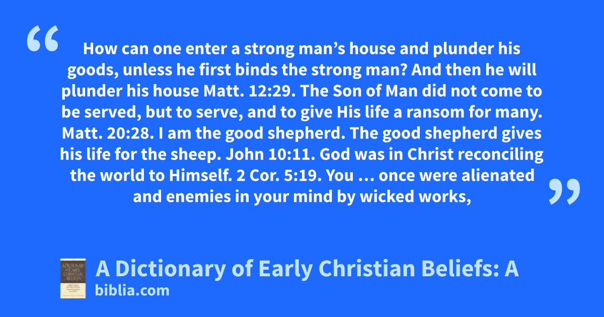 How can one enter a strong man’s house and plunder his goods, unless he first binds the strong man? And then he will plunder his house Matt. 12:29. The Son of Man did not come to be served, but to serve, and to give His life a ransom for many. Matt. 20:28. I am the good shepherd. The good shepherd gives his life for the sheep. John 10:11. God was in Christ reconciling the world to Himself. 2 Cor. 5:19. You … once were alienated and enemies in your mind by wicked works,