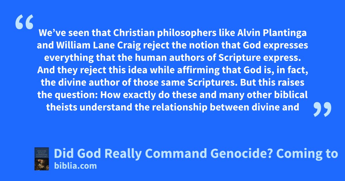 We’ve seen that Christian philosophers like Alvin Plantinga and William Lane Craig reject the notion that God expresses everything that the human authors of Scripture express. And they reject this idea while affirming that God is, in fact, the divine author of those same Scriptures. But this raises the question: How exactly do these and many other biblical theists understand the relationship between divine and
