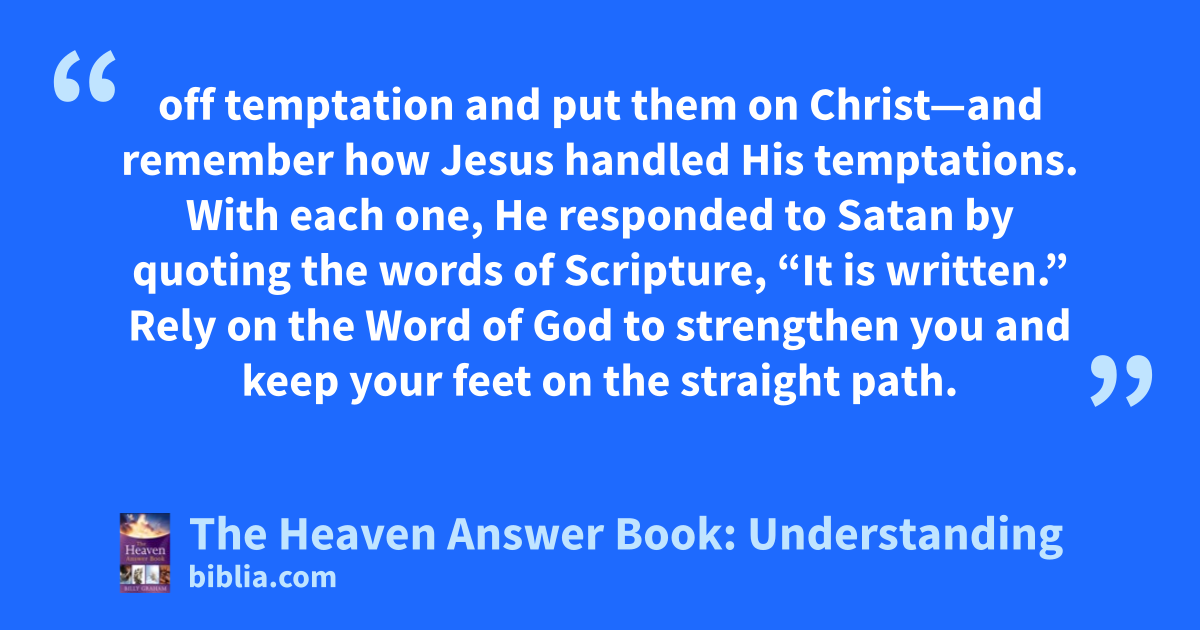 off temptation and put them on Christ—and remember how Jesus handled His temptations. With each one, He responded to Satan by quoting the words of Scripture, “It is written.” Rely on the Word of God to strengthen you and keep your feet on the straight path.