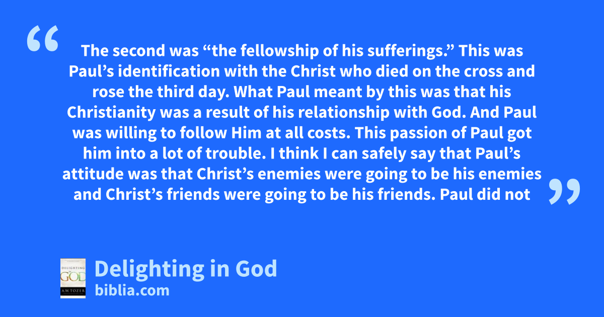 The second was “the fellowship of his sufferings.” This was Paul’s identification with the Christ who died on the cross and rose the third day. What Paul meant by this was that his Christianity was a result of his relationship with God. And Paul was willing to follow Him at all costs. This passion of Paul got him into a lot of trouble. I think I can safely say that Paul’s attitude was that Christ’s enemies were going to be his enemies and Christ’s friends were going to be his friends. Paul did not