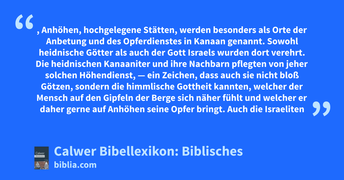 Höhen, Anhöhen, hochgelegene Stätten, werden besonders als Orte der Anbetung und des Opferdienstes in Kanaan genannt. Sowohl heidnische Götter als auch der Gott Israels wurden dort verehrt.