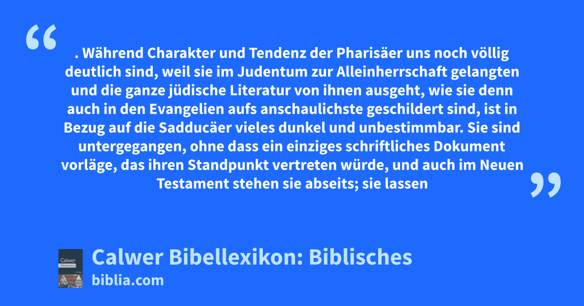 Sadducäer. Während Charakter und Tendenz der Pharisäer uns noch völlig deutlich sind, weil sie im Judentum zur Alleinherrschaft gelangten und die ganze jüdische Literatur von ihnen ausgeht, wie sie denn auch in den Evangelien aufs anschaulichste geschildert sind, ist in Bezug auf die Sadducäer vieles dunkel und unbestimmbar. Sie sind untergegangen, ohne dass ein einziges schriftliches Dokument vorläge, das ihren Standpunkt vertreten würde, und auch im Neuen Testament stehen sie abseits; sie lassen sich mit Jesus und der Gemeinde in keine engere Berührung ein.