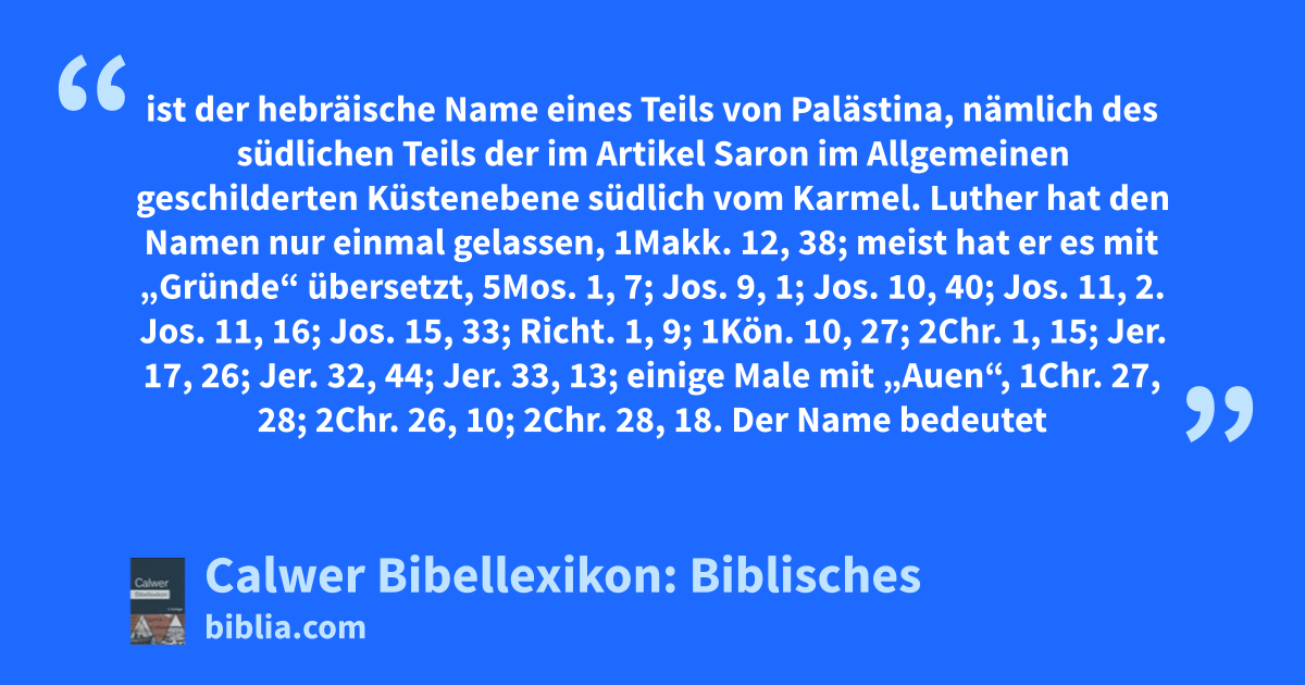 Sephela ist der hebräische Name eines Teils von Palästina, nämlich des südlichen Teils der im Artikel Saron im Allgemeinen geschilderten Küstenebene südlich vom Karmel. Luther hat den Namen nur einmal gelassen, 1Makk. 12, 38; meist hat er es mit „Gründe“ übersetzt, 5Mos. 1, 7; Jos. 9, 1; Jos. 10, 40; Jos. 11, 2. Jos. 11, 16; Jos. 15, 33; Richt. 1, 9; 1Kön. 10, 27; 2Chr. 1, 15; Jer. 17, 26; Jer. 32, 44; Jer. 33, 13; einige Male mit „Auen“, 1Chr. 27, 28; 2Chr. 26, 10; 2Chr. 28, 18.