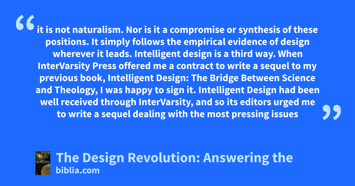 Is it science? Is it religion? What exactly is the Design Revolution? Today scientists, mathematicians, and philosophers in the intelligent design movement are challenging a certain view of science—one that limits its investigations and procedures to purely law-like and mechanical explanations. They charge that there is no scientific reason to exclude the consideration of intelligence, agency...