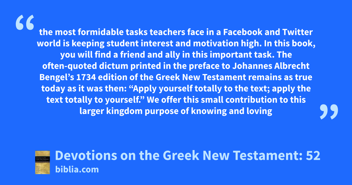 Devotions on the Greek New Testament continues on this path of excellence by introducing these devotions—based on a careful reading and study of the Greek New Testament—written by some of the top Greek scholars of today. Contributors include Scot McKnight, Daniel B. Wallace, Craig L. Blomberg, Mark Strauss, and William D. Mounce, among others. Devotions on the Greek New Testament can be used as...