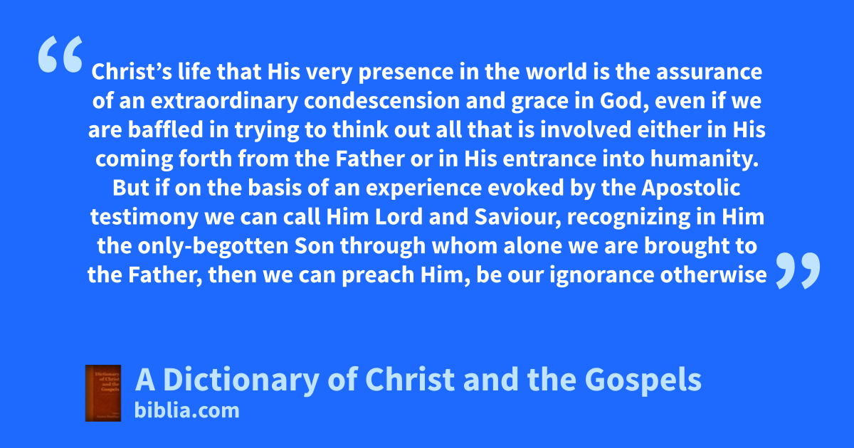 Christ’s life that His very presence in the world is the assurance of an extraordinary condescension and grace in God, even if we are baffled in trying to think out all that is involved either in His coming forth from the Father or in His entrance into humanity. But if on the basis of an experience evoked by the Apostolic testimony we can call Him Lord and Saviour, recognizing in Him the only-begotten Son through whom alone we are brought to the Father, then we can preach Him, be our ignorance otherwise