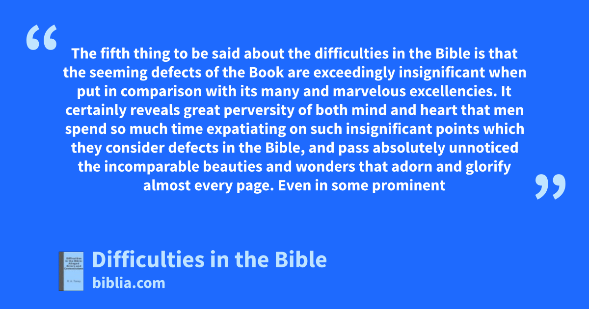 This book is R. A. Torrey's classic look at some of the best known Bible difficulties. Torrey does not attempt to take up in detail every conceivable difficulty that could be found in the Bible. It would take many volumes to do that. Rather, he simply takes up those objections, two dozen in all, of which the modern unbeliever makes the most, and which are most puzzling to many Christians. These...