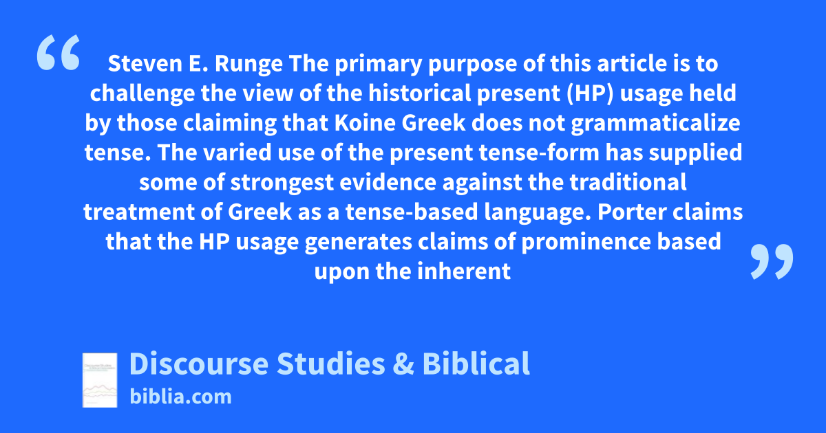Steven E. Runge The primary purpose of this article is to challenge the view of the historical present (HP) usage held by those claiming that Koine Greek does not grammaticalize tense. The varied use of the present tense-form has supplied some of strongest evidence against the traditional treatment of Greek as a tense-based language. Porter claims that the HP usage generates claims of prominence based upon the inherent