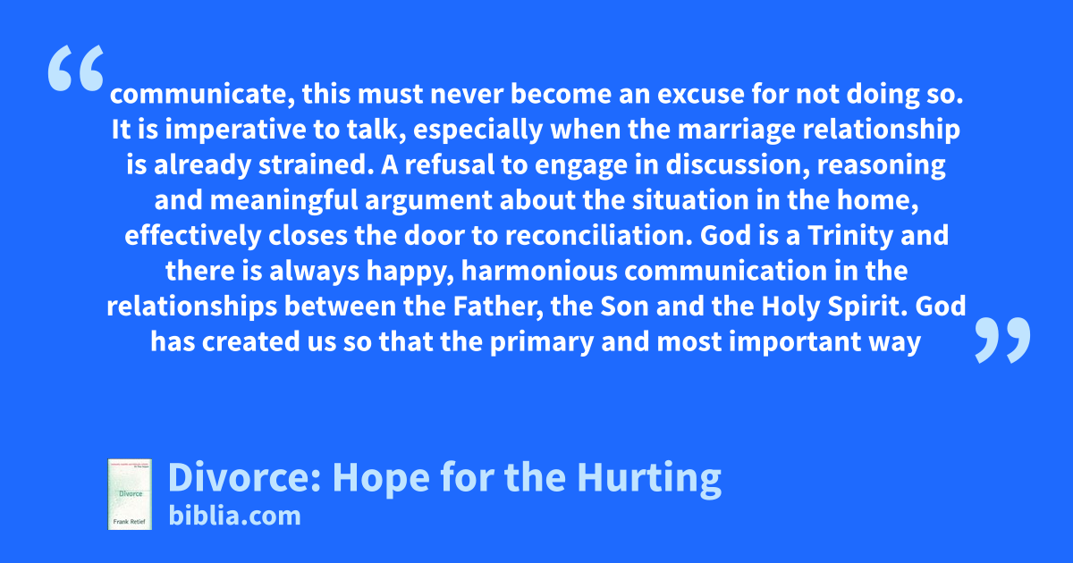 communicate, this must never become an excuse for not doing so. It is imperative to talk, especially when the marriage relationship is already strained. A refusal to engage in discussion, reasoning and meaningful argument about the situation in the home, effectively closes the door to reconciliation. God is a Trinity and there is always happy, harmonious communication in the relationships between the Father, the Son and the Holy Spirit. God has created us so that the primary and most important way