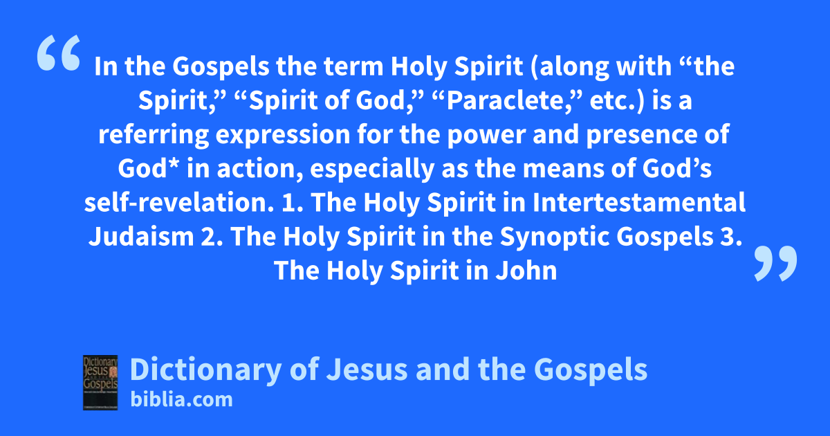In the Gospels the term Holy Spirit (along with “the Spirit,” “Spirit of God,” “Paraclete,” etc.) is a referring expression for the power and presence of God* in action, especially as the means of God’s self-revelation. 1. The Holy Spirit in Intertestamental Judaism 2. The Holy Spirit in the Synoptic Gospels 3. The Holy Spirit in John