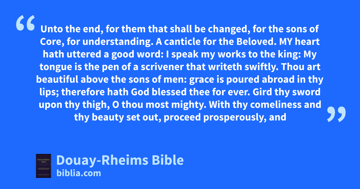 1 Unto the end, for them that shall be changed, for the sons of Core, for understanding. A canticle for the Beloved.