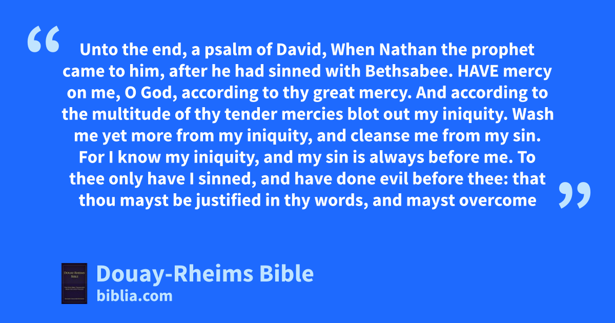 1 Unto the end, a psalm of David, 2 When Nathan the prophet came to him, after he had sinned with Bethsabee.