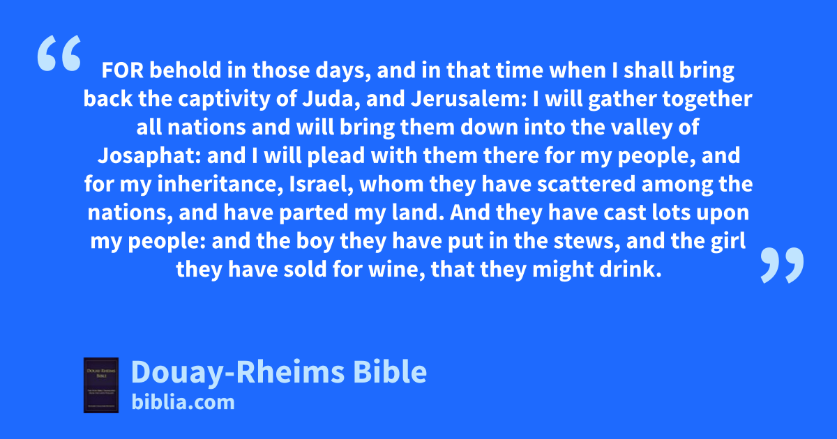 For behold in those days, and in that time when I shall bring back the captivity of Juda, and Jerusalem: