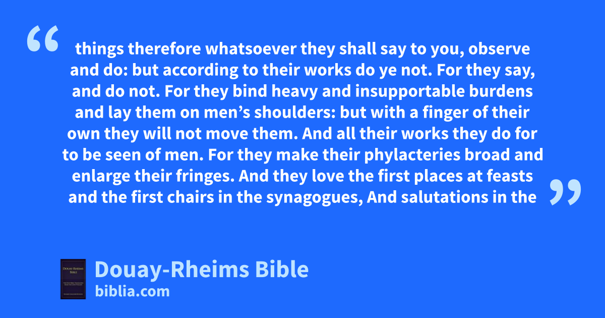 3 All things therefore whatsoever they shall say to you, observe and do: but according to their works do ye not. For they say, and do not.