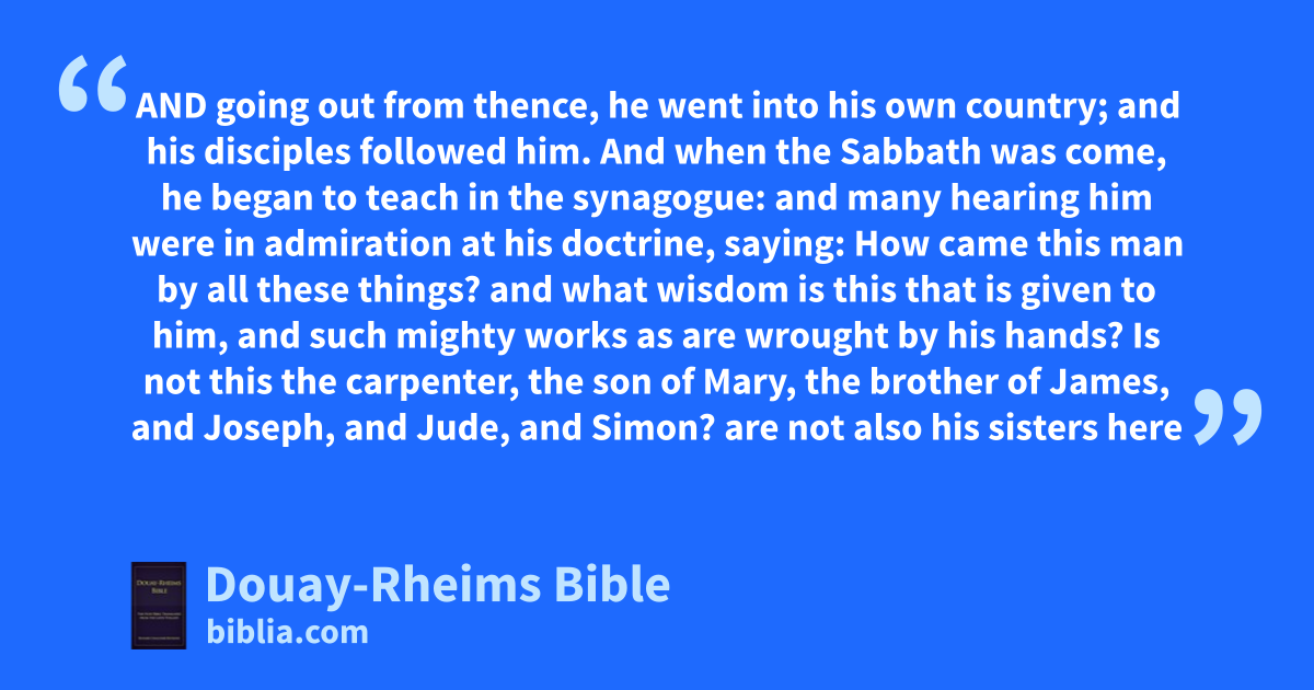 2 And when the Sabbath was come, he began to teach in the synagogue: and many hearing him were in admiration at his doctrine, saying: How came this man by all these things? and what wisdom is this that is given to him, and such mighty works as are wrought by his hands?