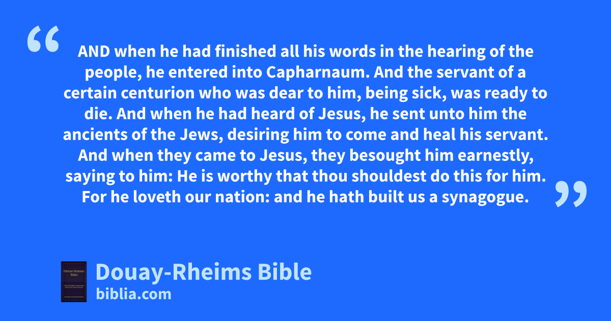And when he had finished all his words in the hearing of the people, he entered into Capharnaum.