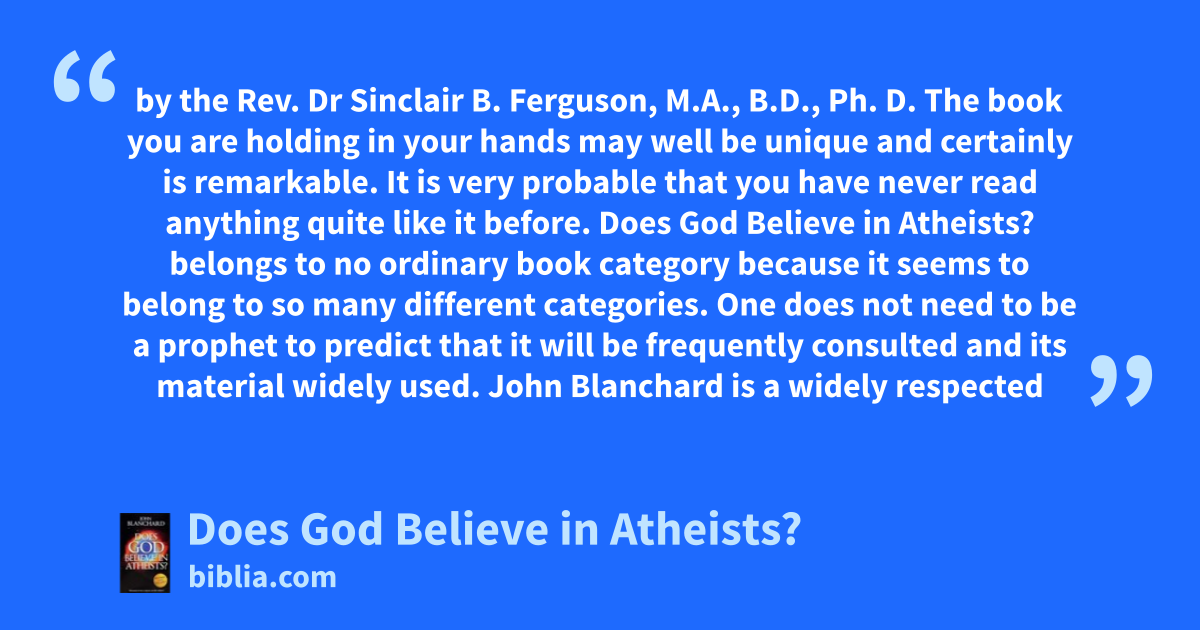 by the Rev. Dr Sinclair B. Ferguson, M.A., B.D., Ph. D. The book you are holding in your hands may well be unique and certainly is remarkable. It is very probable that you have never read anything quite like it before. Does God Believe in Atheists? belongs to no ordinary book category because it seems to belong to so many different categories. One does not need to be a prophet to predict that it will be frequently consulted and its material widely used. John Blanchard is a widely respected