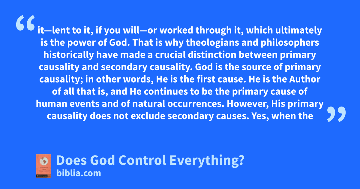 it—lent to it, if you will—or worked through it, which ultimately is the power of God. That is why theologians and philosophers historically have made a crucial distinction between primary causality and secondary causality. God is the source of primary causality; in other words, He is the first cause. He is the Author of all that is, and He continues to be the primary cause of human events and of natural occurrences. However, His primary causality does not exclude secondary causes. Yes, when the