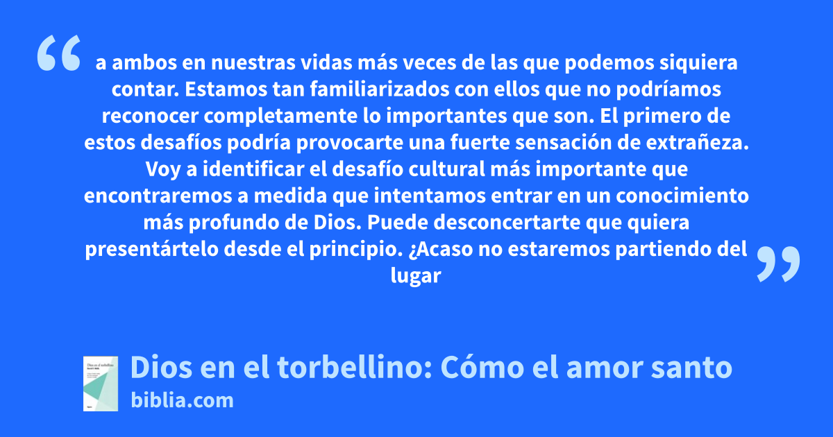 a ambos en nuestras vidas más veces de las que podemos siquiera contar. Estamos tan familiarizados con ellos que no podríamos reconocer completamente lo importantes que son. El primero de estos desafíos podría provocarte una fuerte sensación de extrañeza. Voy a identificar el desafío cultural más importante que encontraremos a medida que intentamos entrar en un conocimiento más profundo de Dios. Puede desconcertarte que quiera presentártelo desde el principio. ¿Acaso no estaremos partiendo del lugar