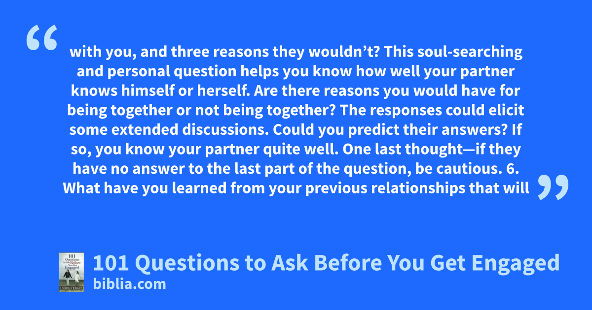 The Perfect Remedy for Cold Feet! More than half of all couples who become engaged this year will never make it to the altar. Why? Leading experts believe it's because couples fail to really get to know their potential mate before getting engaged. Relationship expert and noted couples counselor Norm Wright steers potential brides and grooms through a series of soul-searching questions to discern...