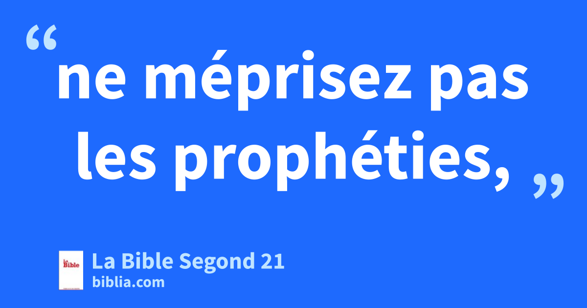 14Nous vous y invitons, frères et sœurs: avertissez ceux qui vivent dans le désordre, réconfortez ceux qui sont abattus, soutenez les faibles, faites preuve de patience envers tous. 15Veillez à ce que personne ne rende à autrui le mal pour le mal, mais recherchez toujours le bien, soit entre vous, soit envers tous les hommes. 16Soyez toujours joyeux. 17Priez sans cesse, 18exprimez votre reconnaissance en toute circonstance, car c’est la volonté de Dieu pour vous en Jésus-Christ. 19N’éteignez pas l’Esprit, 20ne méprisez pas les prophéties, 21mais examinez tout et retenez ce qui est bon. 22Abstenez-vous de toute forme de mal.