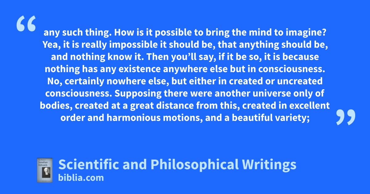 This volume contains two major manuscript notebooks of Jonathan Edwards—“Natural Philosophy” and “The Mind”—as well as a number of shorter manuscript writings connected with his scientific interests and philosophical development. Several of the shorter papers have not previously been published, notably Edwards’ letter on the “flying” spider (hither known only in a draft version), an essay on...