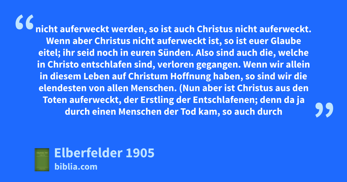 14 wenn aber Christus nicht auferweckt ist, so ist also auch unsere Predigt vergeblich, aber auch euer Glaube vergeblich.