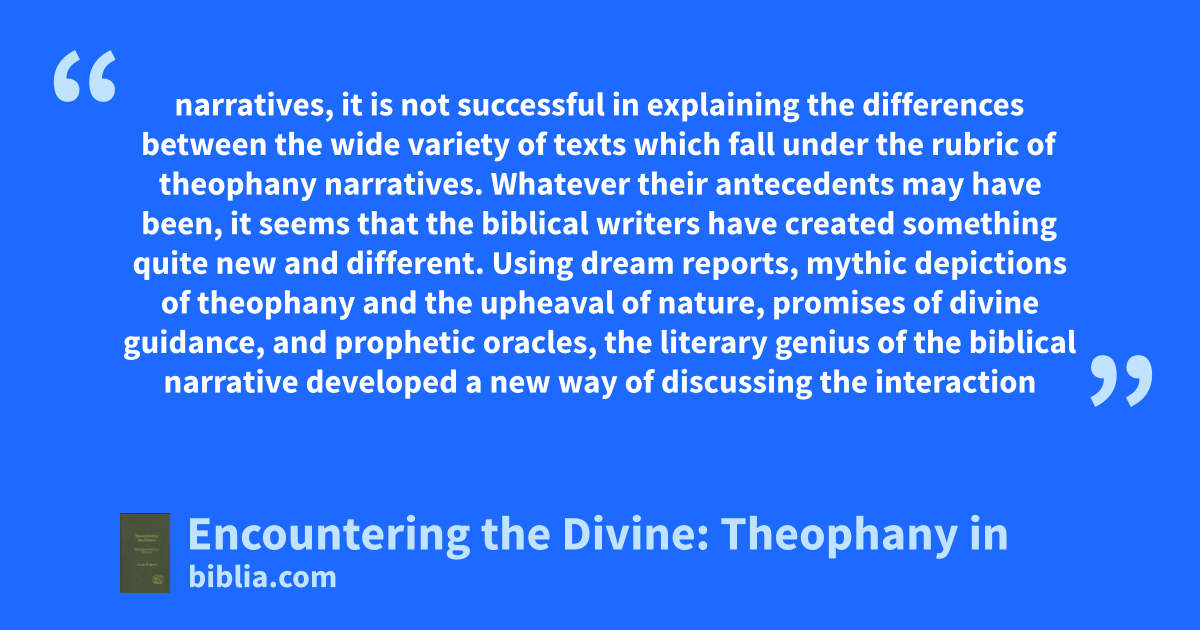 Encountering the Divine: Theophany in Biblical Narrative is George W. Savran’s highly regarded and much sought after monograph about the narratives on humans encountering God, as depicted in the Hebrew Bible. In general terms “theophany” refers to all divine appearances but mostly those occurring as visions, dreams, or other revelations. However, in this study the focus is on scriptural...