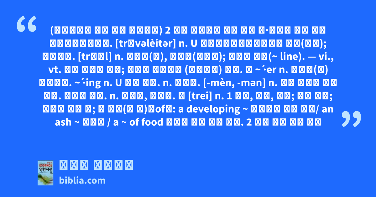 (북아메리카 평원 지방 인디언의) 2 개의 막대기를 틀로 엮어 개·말에게 끌게 하는 운반용구〔썰매〕. [trǽvəlèitər] n. U 트래벌레이터⦅움직이는 보도(步道); 상표명⦆. [trɔːl] n. 트롤망(網), 저인망(底引網); ⦅미⦆ 주낙(~ line). — vi., vt. 트롤 어업을 하다; ⦅미⦆ 주낙으로 (물고기를) 잡다. ㉺ ~ ́·er n. 트롤선(船) 〔어부〕. ~ ́·ing n. U 트롤 어업. n. 트롤선. [-mèn, -mən] n. 트롤 어업을 하는 사람. ⦅미⦆ 주낙. n. 트롤망, 저인망. ⁑ [trei] n. 1 식판, 푼주, 쟁반; 음식 접시; 거기에 담은 것; 한 접시(의 양)⦅of⦆: a developing ~ 〖사진〗 현상 접시/ an ash ~ 재떨이 / a ~ of food 식판에 가득 담은 음식. 2 책상 위의 사무 서류
