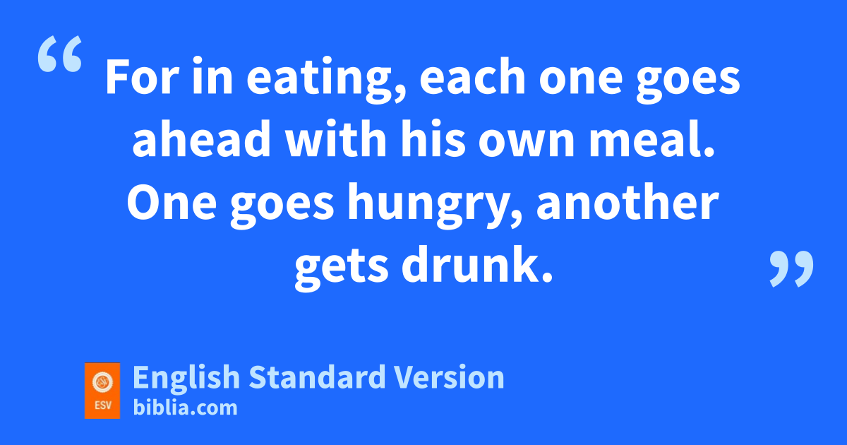 17 But in the following instructions I do not commend you, because when you come together it is not for the better but for the worse. 18 For, in the first place, when you come together as a church, rI hear that there are divisions among you. And I believe it in part,5 19 for sthere must be factions among you in order tthat those who are genuine among you may be recognized. 20 When you come together, it is not the Lord’s supper that you eat. 21 For in eating, each one goes ahead with his own meal. One goes hungry, uanother gets drunk. 22 What! Do you not have houses to eat and drink in? Or do you despise vthe church of God and whumiliate those who have nothing? What shall I say to you? Shall I commend you in this? No, I will not.