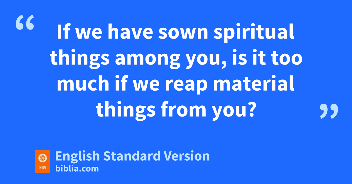 8 Do I say these things on human authority? Does not the Law say the same? 9 For it is written in the Law of Moses, u“You shall not muzzle an ox when it treads out the grain.” Is it for oxen that God is concerned? 10 Does he not certainly speak for our sake? It was written vfor our sake, because wthe plowman should plow in hope and the thresher thresh in hope of sharing in the crop. 11 xIf we have sown spiritual things among you, is it too much if we reap material things from you? 12 If others share this rightful claim on you, do not we even more?