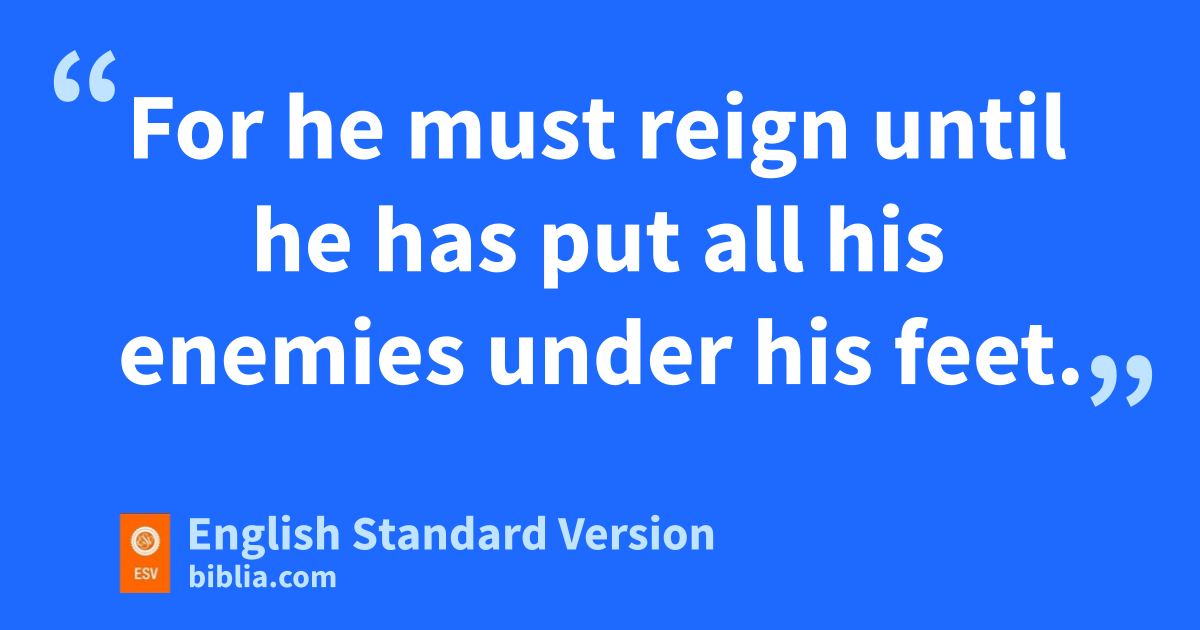 20 But in fact fChrist has been raised from the dead, gthe firstfruits of those who have fallen asleep. 21 For as hby a man came death, iby a man has come also the resurrection of the dead. 22 For jas in Adam all die, so also in Christ shall all be made alive. 23 But each in his own order: Christ the firstfruits, then kat his coming lthose who belong to Christ. 24 Then comes the end, when he delivers mthe kingdom to God the Father after destroying nevery rule and every authority and power. 25 For he must reign ountil he has put all his enemies under his feet. 26 The last enemy to be pdestroyed is death. 27 For q“God3 has put all things in subjection under his feet.” But when it says, “all things are put in subjection,” it is plain that he is excepted who put all things in subjection under him. 28 When rall things are subjected to him, then the Son himself will also be subjected to him who put all things in subjection under him, that sGod may be all in all.