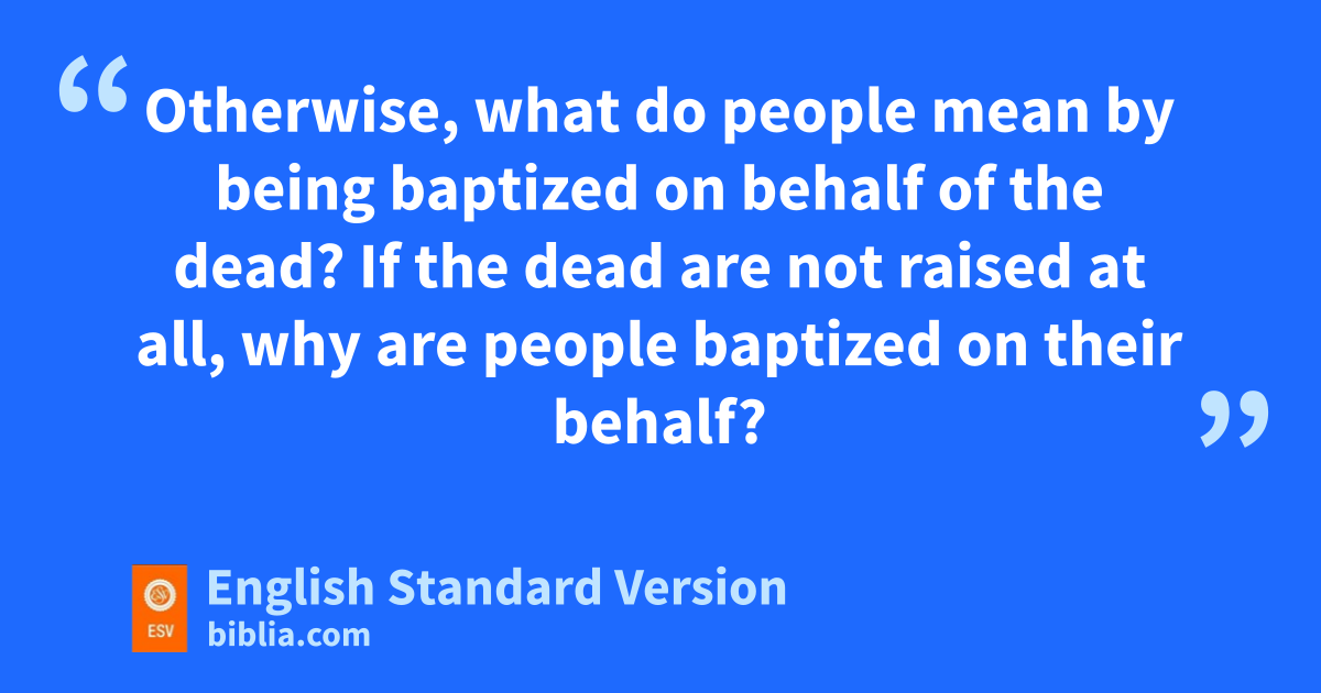 29 Otherwise, what do people mean by being baptized on behalf of the dead? If the dead are not raised at all, why are people baptized on their behalf? 30 Why are we tin danger every hour? 31 I protest, brothers, by umy pride in you, which I have in Christ Jesus our Lord, vI die every day! 32 What do I gain if, humanly speaking, wI fought with beasts at Ephesus? If the dead are not raised, x“Let us eat and drink, for tomorrow we die.” 33 yDo not be deceived: z“Bad company ruins good morals.”4 34 aWake up from your drunken stupor, as is right, and do not go on sinning. For bsome have no knowledge of God. cI say this to your shame.
