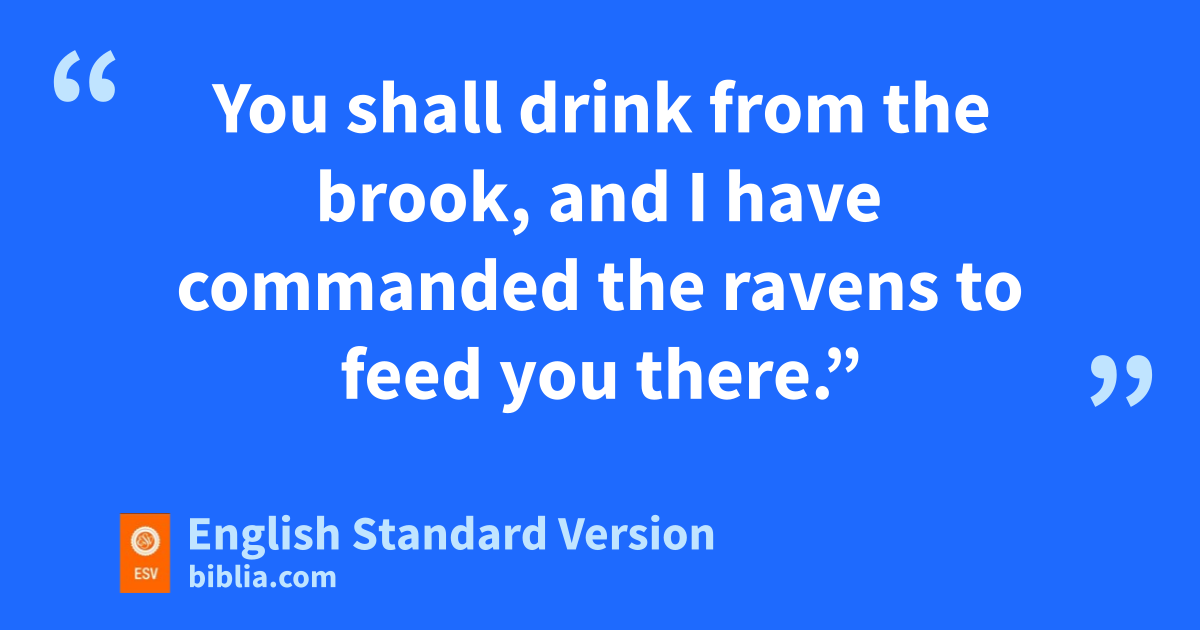 17 Now Elijah the Tishbite, of sTishbe1 in Gilead, said to Ahab, t“As the Lord, the God of Israel, lives, ubefore whom I stand, vthere shall be neither dew nor rain these years, except by my word.” 2 And the word of the Lord came to him: 3 “Depart from here and turn eastward and hide yourself by the brook Cherith, which is east of the Jordan. 4 You shall drink from the brook, and I have commanded the ravens to feed you there.” 5 So he went and did according to the word of the Lord. He went and lived by the brook Cherith that is east of the Jordan. 6 And the ravens brought him bread and meat in the morning, and bread and meat in the evening, and he drank from the brook. 7 And after a while the brook dried up, because there was no rain in the land.