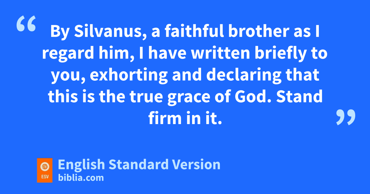 12 By oSilvanus, a faithful brother as I regard him, pI have written briefly to you, exhorting and declaring that this is qthe true grace of God. rStand firm in it. 13 She who is at Babylon, who is likewise chosen, sends you greetings, and so does sMark, my son. 14 tGreet one another with the kiss of love.