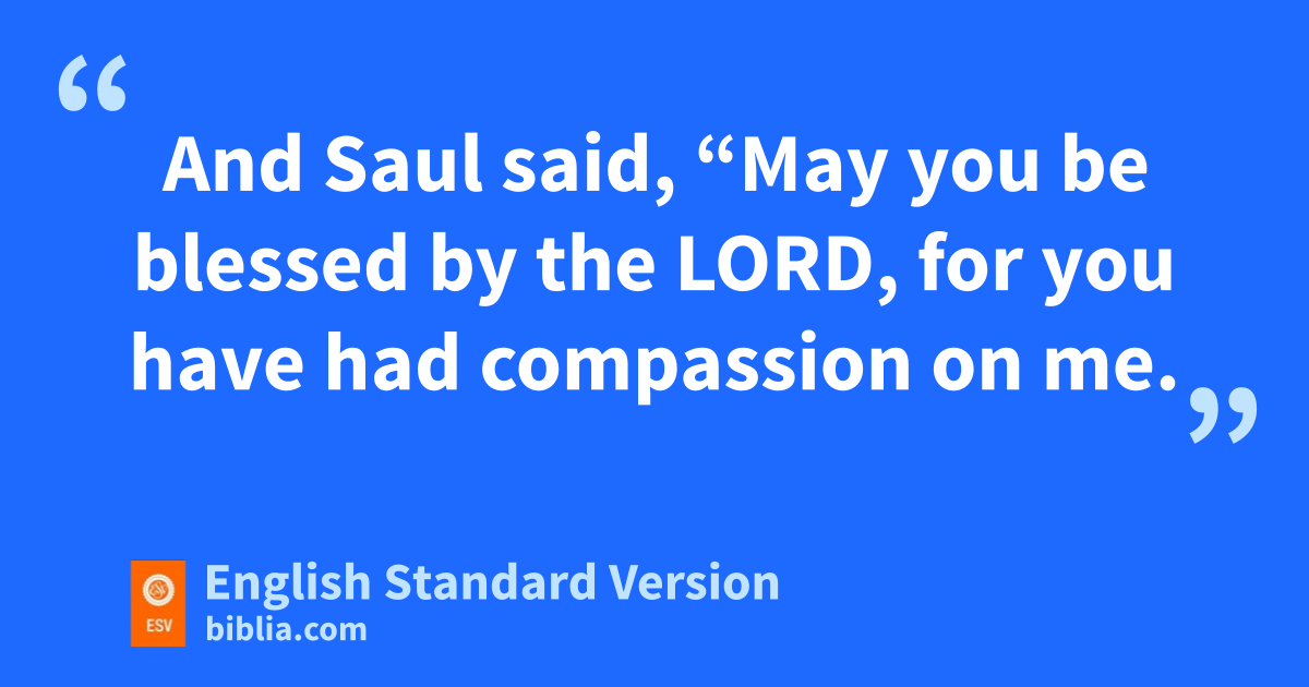 19 qThen the Ziphites went up to Saul at Gibeah, saying, “Is not David hiding among us in the strongholds at Horesh, on the hill of Hachilah, which is south of rJeshimon? 20 Now come down, O king, according to all your heart’s desire to come down, sand our part shall be to surrender him into the king’s hand.” 21 And Saul said, t“May you be blessed by the Lord, ufor you have had compassion on me. 22 Go, make yet more sure. Know and see the place where his foot is, and who has seen him there, for it is told me that he is very cunning. 23 See therefore and take note of all the lurking places where he hides, and come back to me with sure information. Then I will go with you. And if he is in the land, I will search him out among all the thousands of Judah.” 24 And they arose and went to Ziph ahead of Saul.