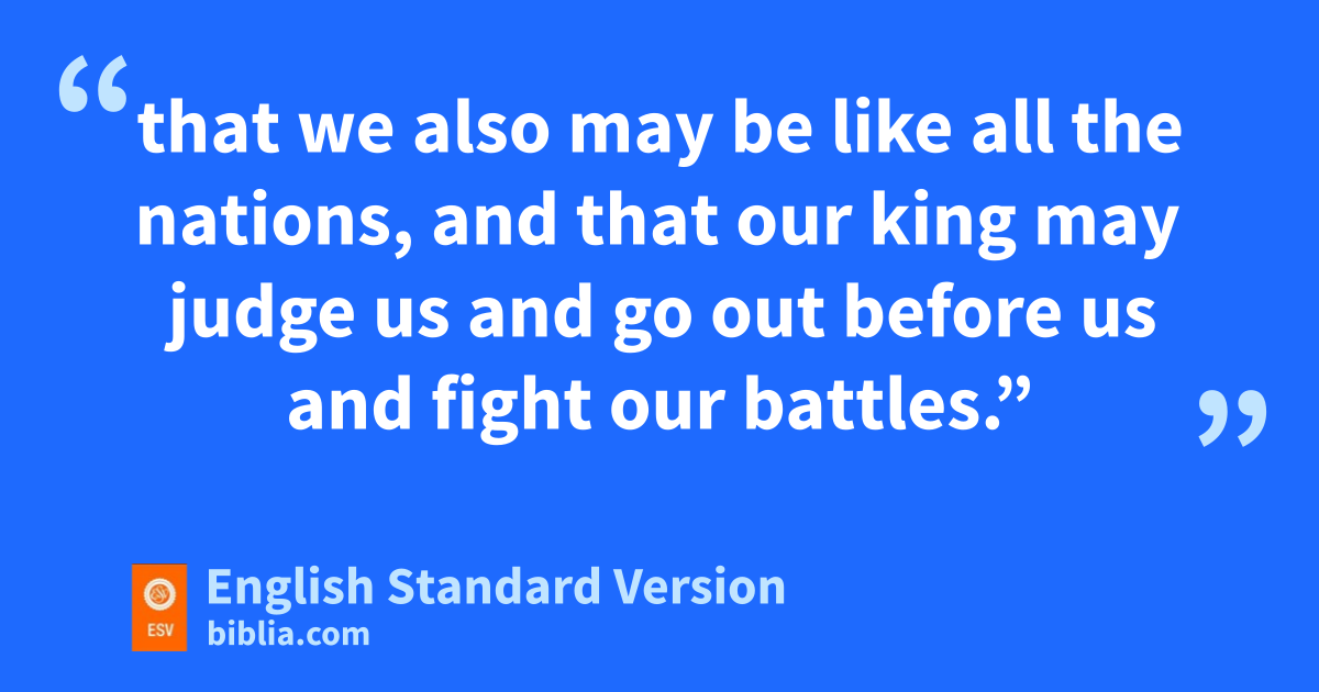 19 But the people refused to obey the voice of Samuel. And they said, “No! But there shall be a king over us, 20 dthat we also may be like all the nations, and that our king may judge us and go out before us and fight our battles.” 21 And when Samuel had heard all the words of the people, he repeated them in the ears of the Lord. 22 And the Lord said to Samuel, e“Obey their voice and make them a king.” Samuel then said to the men of Israel, “Go every man to his city.”